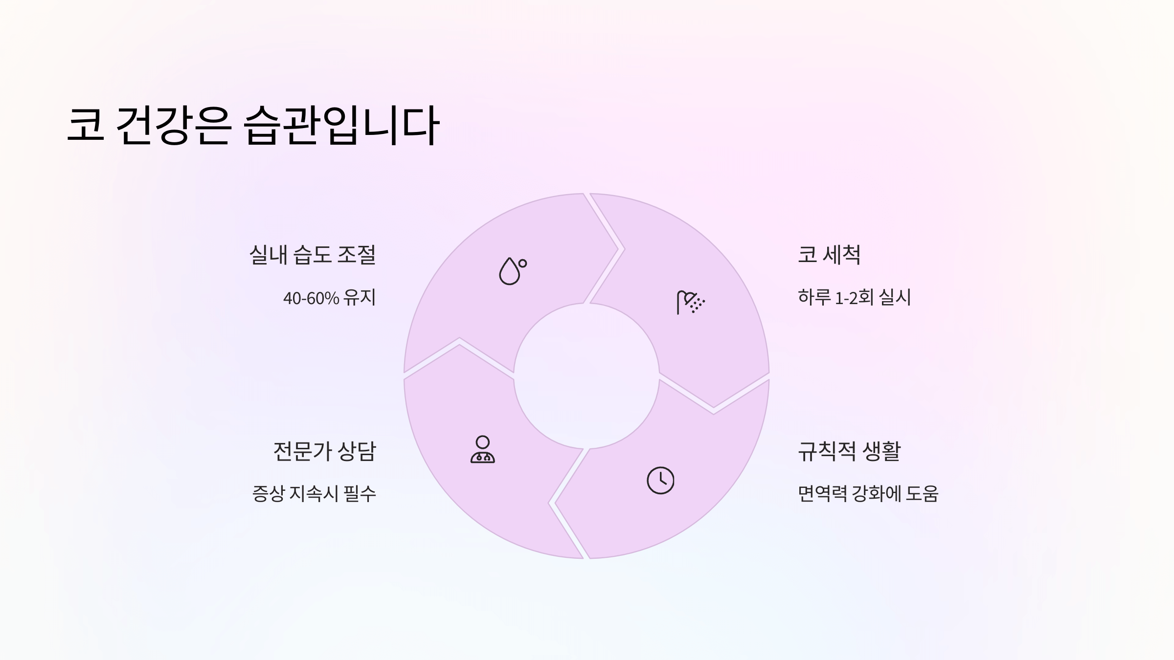 비염인지 축농증인지 헷갈릴 때는 무작정 약부터 먹지 마시고, 오늘 알려드린 체크 포인트들을 하나씩 짚어보세요. 증상은 몸이 보내는 신호예요. 자꾸 반복되거나 통증이 느껴진다면 반드시 전문가의 도움을 받아보는 게 좋아요. 그리고 코 건강은 습관입니다. 오늘부터 실내 습도 조절, 코 세척, 규칙적인 생활로 나와 가족의 호흡기 건강을 지켜보세요. ‘숨 쉬기 편한 하루’, 생각보다 가까이에 있어요!