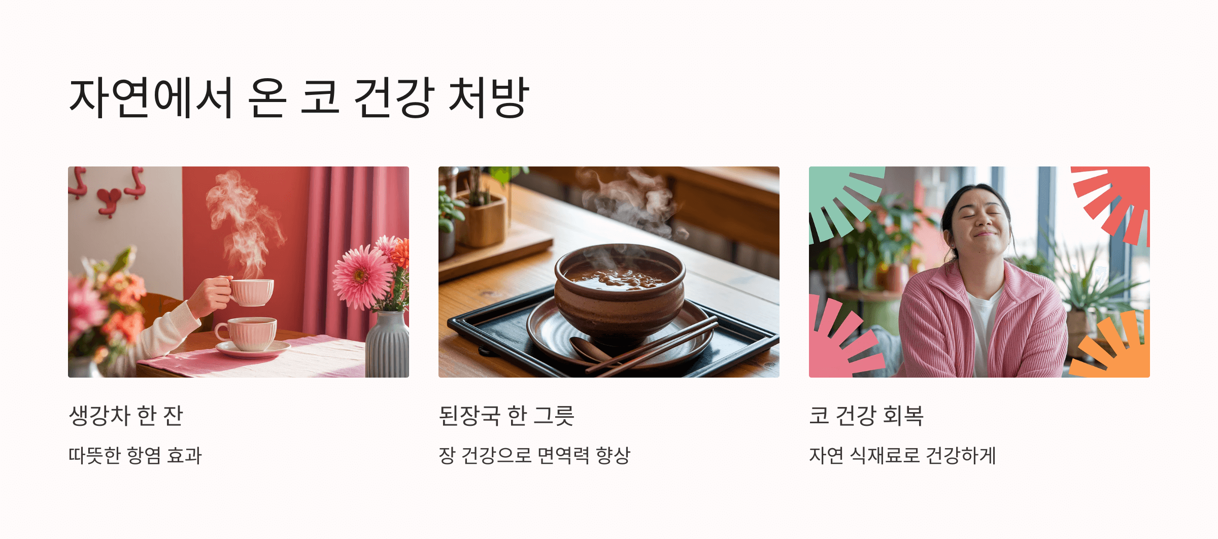 약 말고도 먹는 것만 잘 챙겨도 축농증이 훨씬 수월해질 수 있다는 사실, 이제 확실히 느끼셨죠? 몸 안의 염증은 결국 면역과 식습관의 문제기도 해요. 하루에 하나씩만이라도 실천해 보세요. 생강차 한 잔, 된장국 한 그릇이 여러분의 코 건강을 바꿔줄 수 있습니다. 자연에서 온 식재료들로 건강하게 회복해 보는 거, 어렵지 않아요. 오늘도 따뜻한 한 끼로 나를 위한 코 케어 시작해 볼까요?