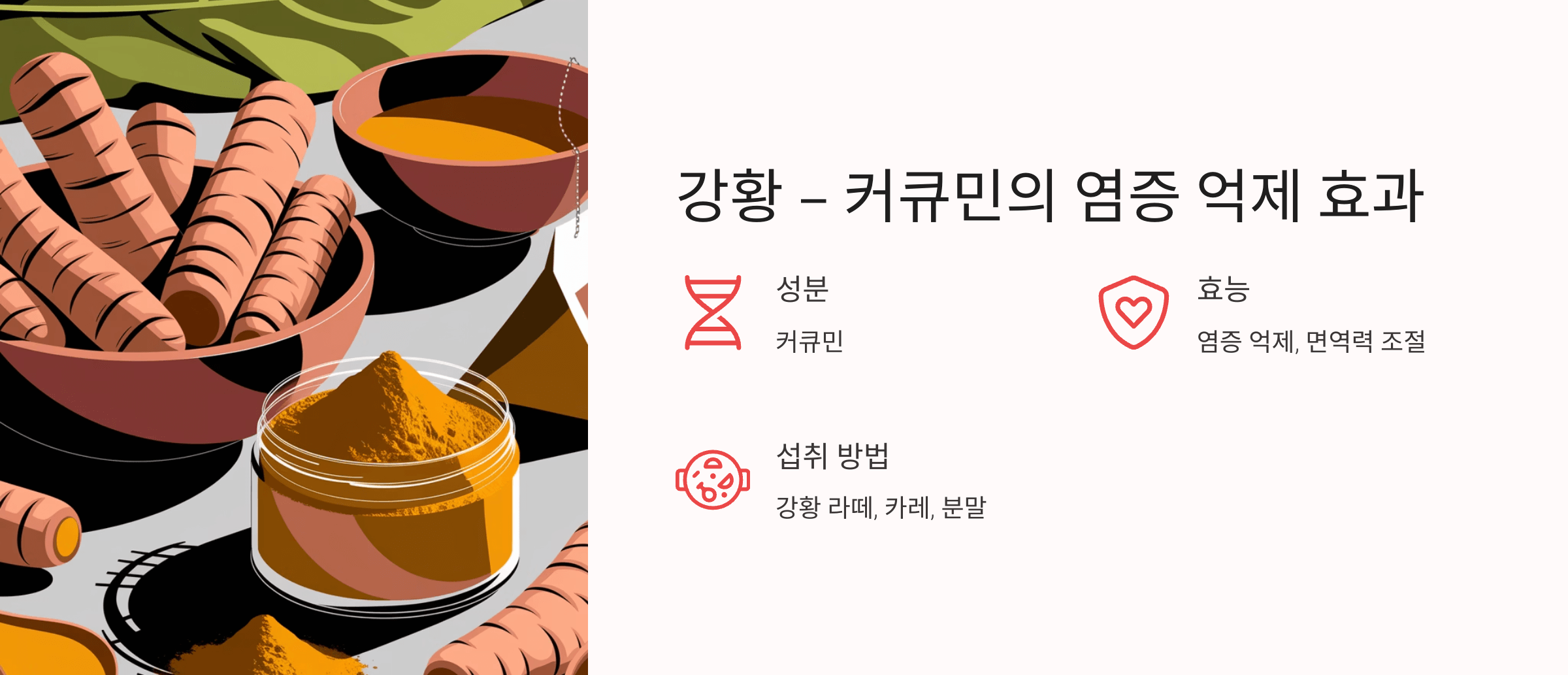강황은 ‘커큐민(curcumin)’이라는 노란 색소 성분이 핵심인데, 이 성분은 강력한 항염 작용을 가지고 있어요. 축농증의 염증 반응을 줄이고, 면역 균형을 회복시키는 데 도움 됩니다. 우유에 섞어 마시는 ‘강황 라테’도 요즘 인기죠.